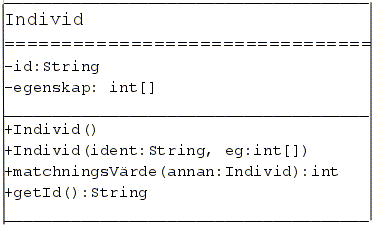 Kim20 och Kim34 passar bäst. Matchningsvärdet=13Klassen Individ finns given som ett klassdiagram: