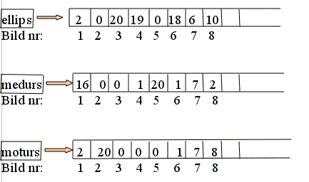 a) De tre instansvariablerna som beskrivs ovan, ellips, medurs och moturs.